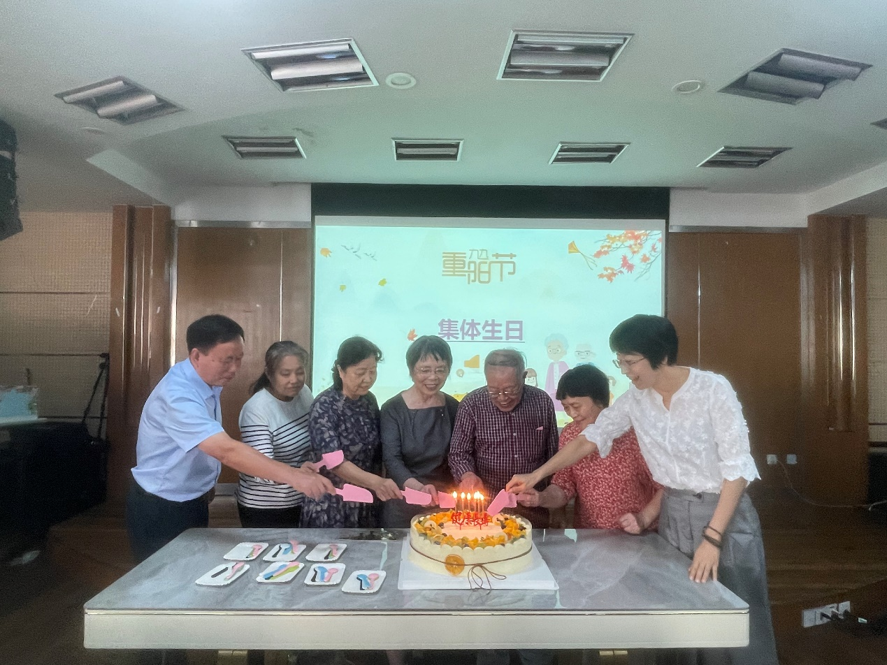 图书信息档案联合党总支书记李军代表党政班子表达了对老同志们节日的问候,汇报了三个部门近期开展的工作,对大家长期以来对学校工作的关心和支持表示衷心的感谢!周细应馆长和张可敏馆长同整十生日的老同志们一起切了生日蛋糕。