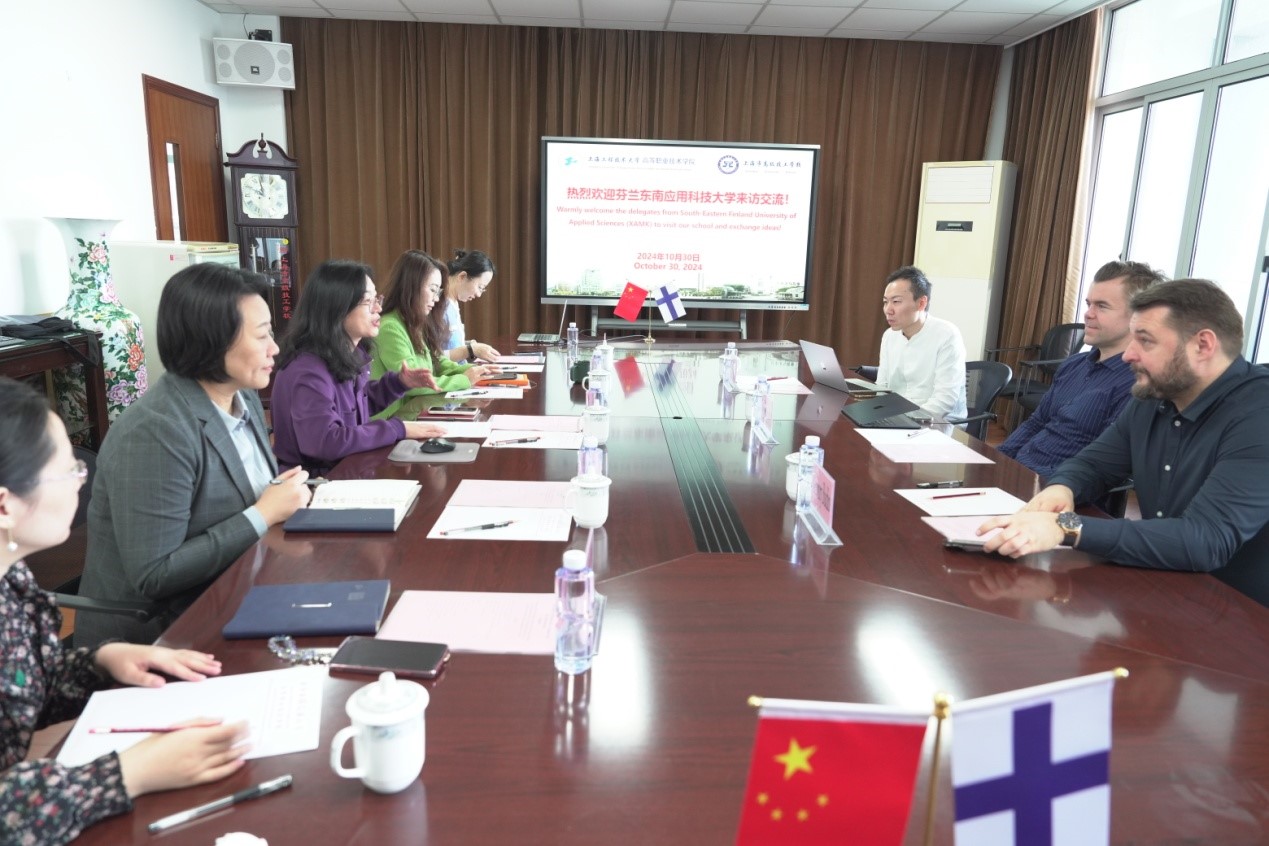 10月30日上午,芬兰东南应用科技大学(XAMK)国际事务和教育出口部主任Santeri Koivisto先生一行3人到访高职学院,与学院领导、院校办主任、教务科科长、基础教学部主任及国交专员开展交流。