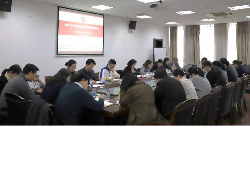 会上,学生工作部(处)长、研究生工作部部长朱蓓解读学生条线开展党史学习教育方案,介绍了学生条线讲党史、悟党史、说党史、传党史、寻党史、听党史、懂党史、忆党史的具体方案,以及针对本科生和研究生的不同特点,开展的“十百千万”特色活动和“四个100”党史学习教育。组织部、宣传部负责人分别围绕庆祝建党百年“我为建党百年打卡”活动以及迎接建党百年意识形态稳定工作交流发言。