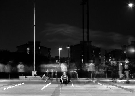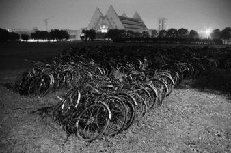 关于器材:器材是摄影创作里相对不重要的一个环节。学校的作业要求全部使用黑白胶卷。我就是用的是普通的135胶卷相机和带有广角端的变焦镜头(不着重讲究画质时,任何变角镜头都比定焦镜头好用)晚上拍照曝光时间较长,一定要使用三脚架,有快门线的话也更好。