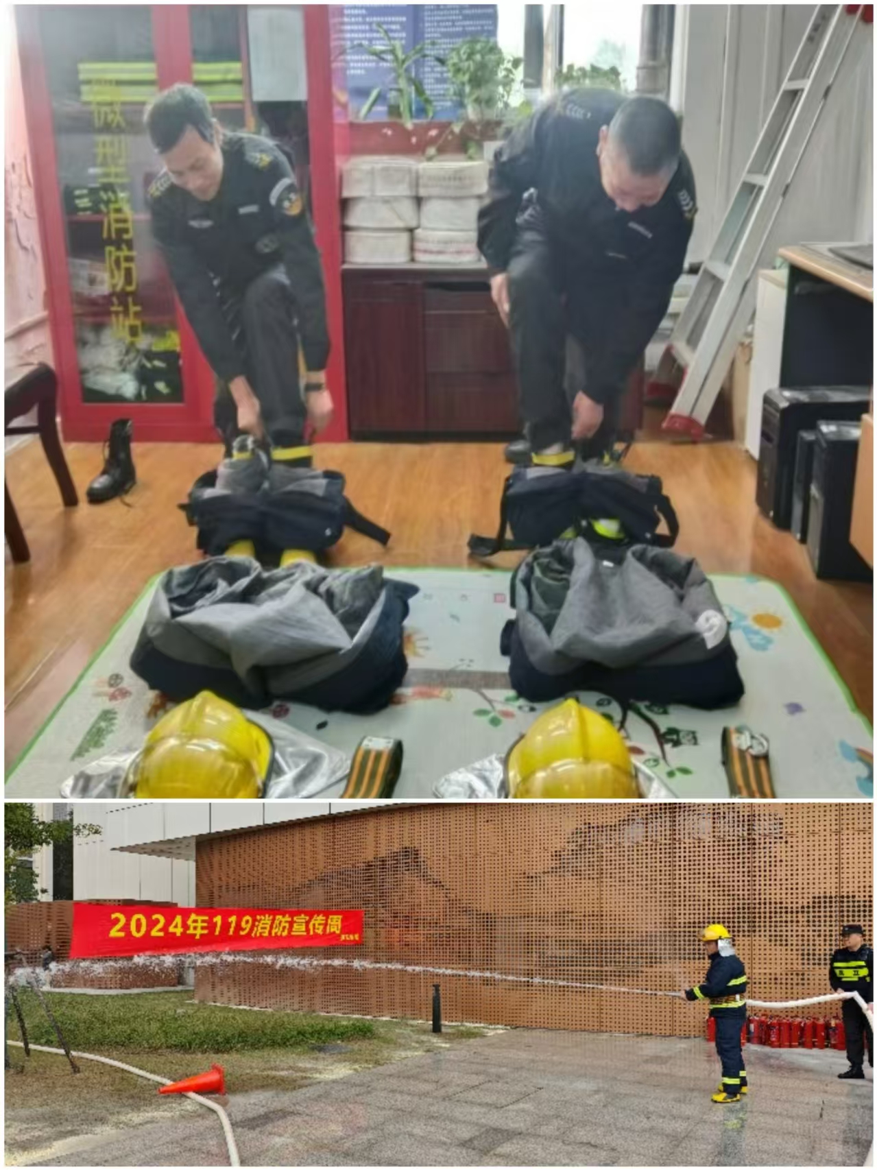 消防设施技能实操。保卫部(处)组织微型消防站成员及保安代表开展消防战斗服规范穿戴、消火栓连接水带水枪灭火实操演练,使其掌握消防安全知识点,进一步提高应对突发事件处置能力。