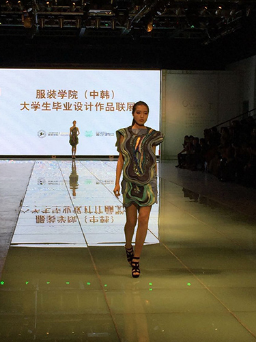 在本次中韩大学生毕业设计作品联展上,学生们大胆运用了3D打印、数码印花、镂空绣花等先进纺织服装技术,给观众们带来了强烈的视觉冲击。此次毕业设计作品展,年轻的“设计师”们在导师的指导下,充分发挥想象力,从灵感来源、氛围板,到色彩研发、印花,到最终设计定稿、绘制成工艺图及市场手册的全过程,自己动手制作两套服装,制作过程中的设计构思、平面裁剪、立体裁剪到最后的缝纫工艺无不凝聚着师生的心血和汗水。