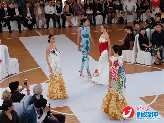 解放日报 解放网讯(记者 徐瑞哲)13日,中法埃菲时装设计师学院2015届毕业秀在十字形T台上演,参演的60套作品分别来自中法学院上海和巴黎校区,海内外服装专业大学生用时尚语言诠释了“超级一代”的设计主题。