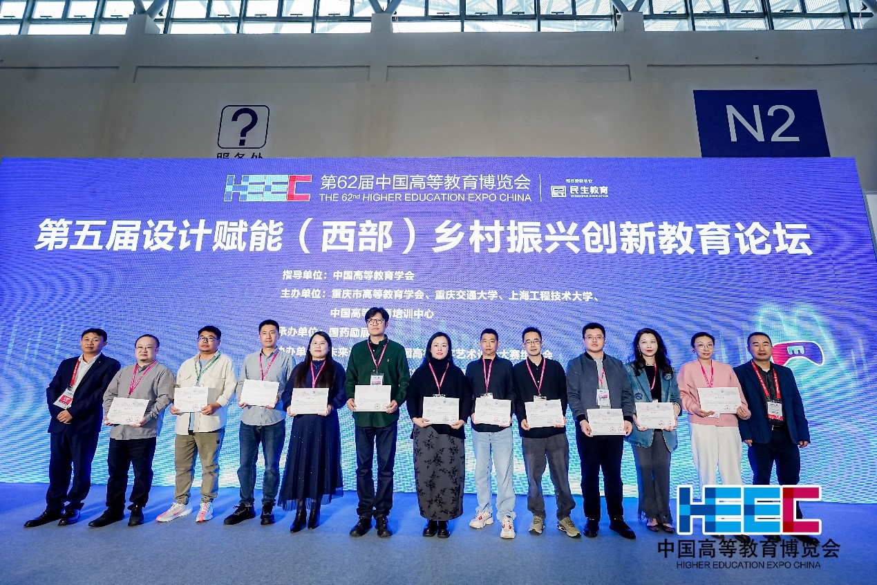 11月16日,由重庆市高等教育学会、重庆交通大学、上海工程技术大学及中国高等教育培训中心联合主办的第五届设计赋能(西部)乡村振兴创新教育论坛在重庆市召开。此次论坛作为第62届中国高等教育博览会的重要组成部分,旨在通过设计教育的力量,为西部地区的乡村振兴注入新的活力和创新思路。上海工程技术大学副校长夏春明,重庆市高等教育学会副会长,重庆工商大学原校长孙芳城,嘉兴大学党委书记沈希,安徽建筑大学副校长李早,重庆交通大学副校长张铭、未来设计师大赛组委会秘书长郭清胜等出席活动,我校教务处处长饶品华、国际创意设计学院院长顾艺等相关负责人参加活动。