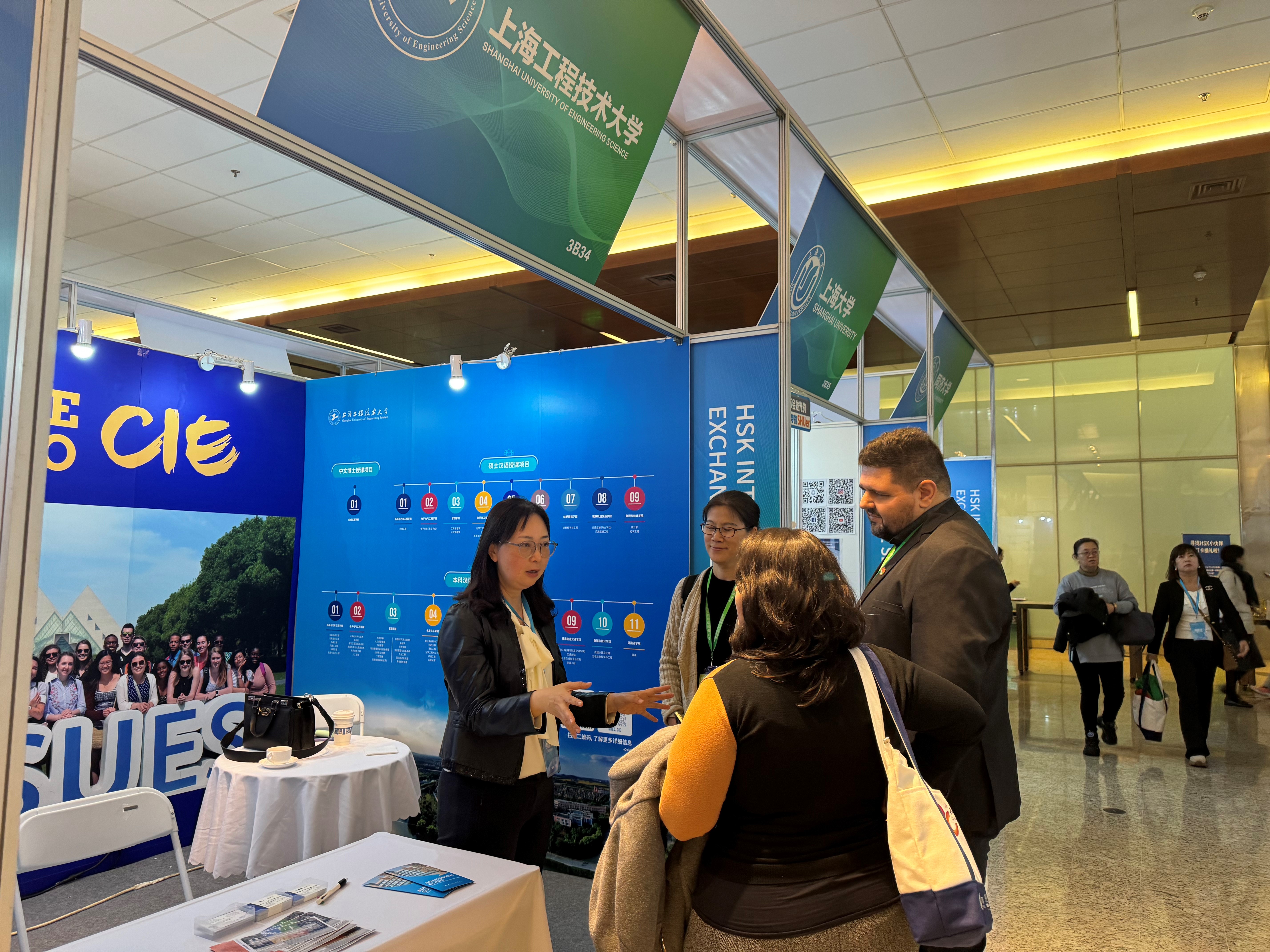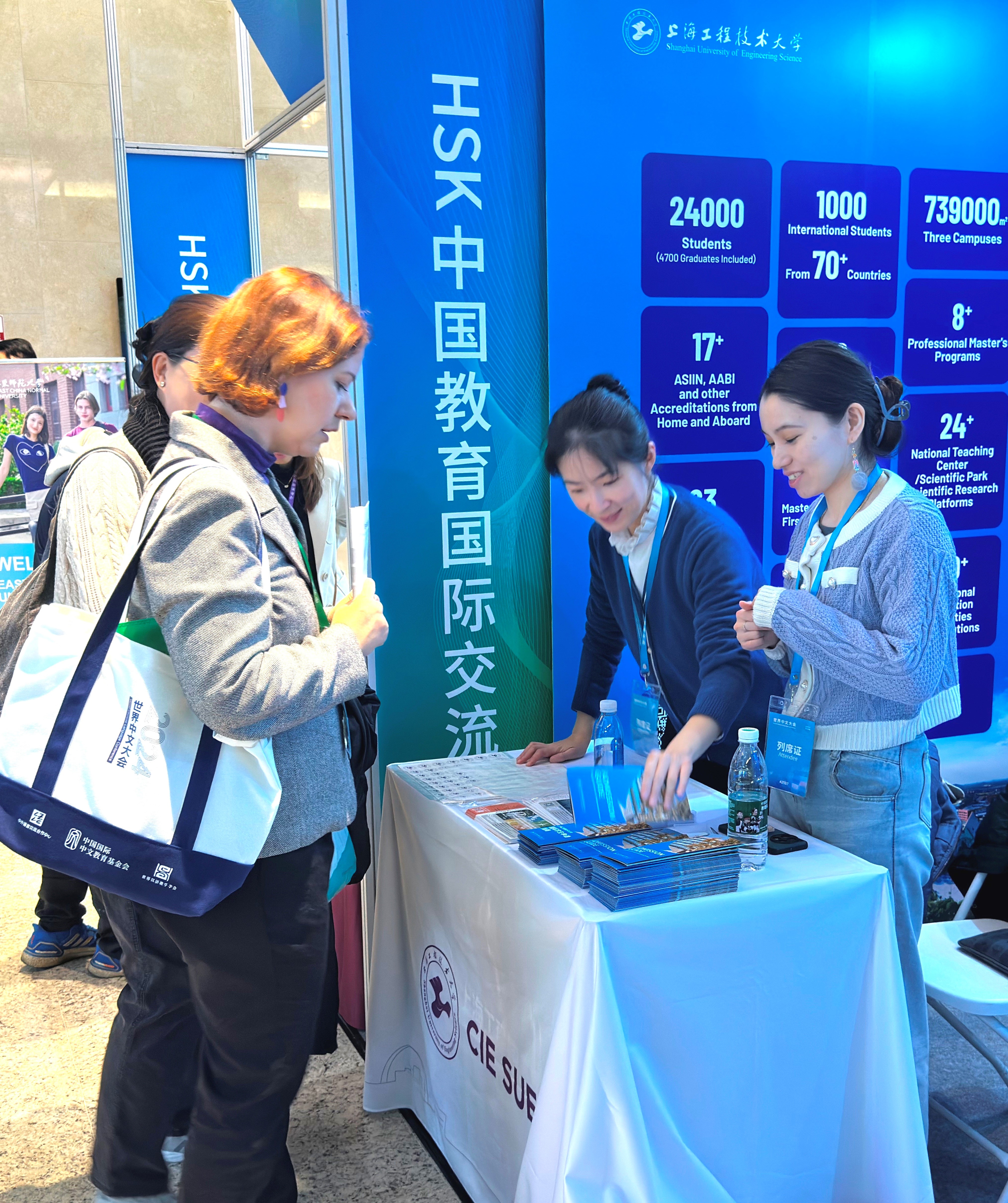 在教育国际交流展区,我校展位吸引了众多学生、境外院校、专业机构代表咨询留学信息。国教院老师向每一位咨询者热情介绍我校概况与优势、各项目与奖学金情况、校园生活等信息,鼓励学生踊跃申请。许多咨询者展现出了浓厚的兴趣和强烈的学习与合作愿望。
