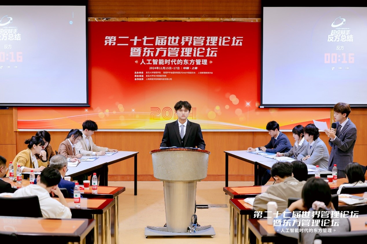 11月16日,由管理学院东方管理专业主办的“方太杯·第十三届东方管理大学生论坛”受邀作为第二十七届世界管理论坛暨东方管理论坛的专题论坛在复旦大学管理学院友邦堂成功举办。论坛得到了方太集团的赞助。方太集团上海大区人力资源总监李虹、经理刘俐,校领导史健勇教授、专业教师孟勇教授、胡茉副教授和刘勰老师出席论坛。