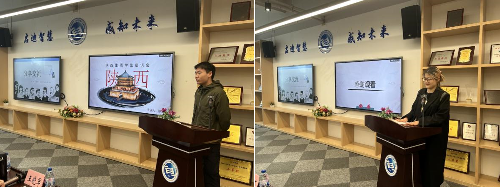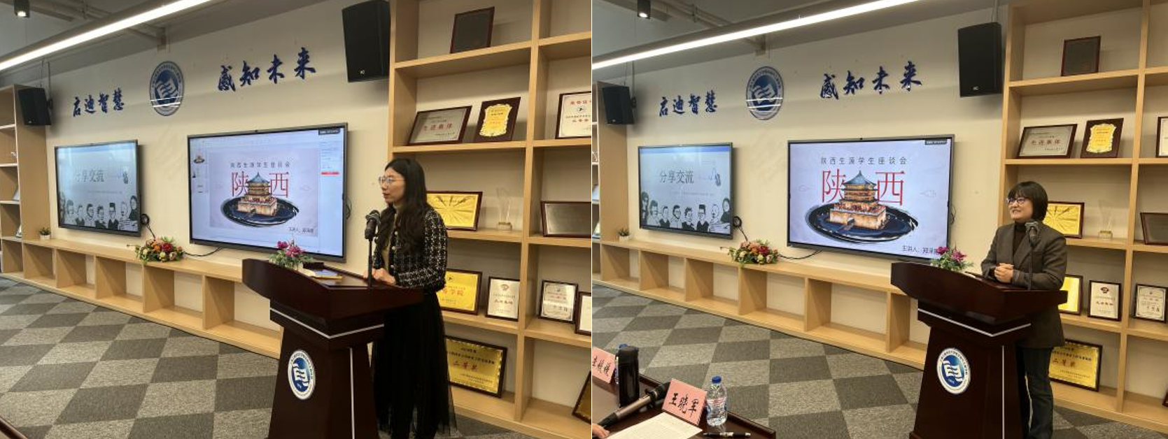 陕西籍学生代表郑泽阳、孙蕊分别从课程学习、业余生活、实习考研等几个方面分享了个人经历,希望同学们能够做好个人规划,充实愉快地度过大学时光。