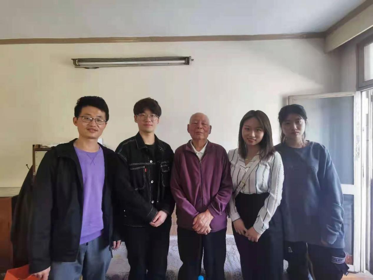 5月3日上午,纺织服装学院团委书记赵桐老师、辅导员唐全老师、校友辅导员刘朝芳老师以及学生代表来到新村路285弄,走访纺织服装学院离休干部赵永昌先生。
