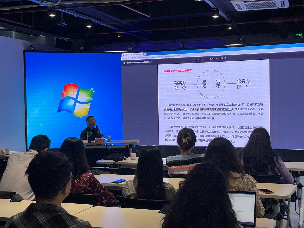 5月7日上午在艺术楼虚拟实验中心,中韩多媒体设计学院邀请了广州美术学院视觉艺术设计学院杜羿纬教授为中韩学院师生带来了题为“从中国元素走向中国风格”的讲座。中韩多媒体设计学院全体专业教师及研究生聆听了讲座。讲座上杜羿纬教授围绕品牌形象设计与品牌文化策划的主题,分别从研究背景、相关概念、品牌的审美文化现状、各国品牌形象设计风格、中国设计风格的形成与发展、东方美学设计风格的表现等内容展开讲述。