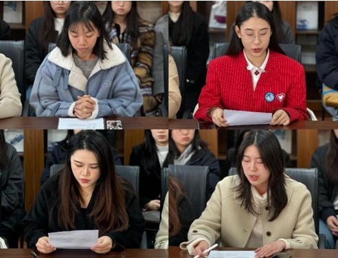 研究生会主席张楠同学和学生会主席姜润寒同学分别围绕学生组织工作、学院文化建设以及学生权益保障等方面进行了分享交流。进博会志愿者代表黄倩仪和陈掬玥两位同学分享了在志愿服务中的深刻感悟与宝贵收获。