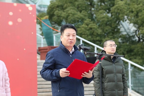 12月24日,冬日的暖阳洒满校园,图文信息中心广场上红旗飘扬,“跃青春 向未来”上海工程技术大学“迎新年”师生阳光跑活动拉开帷幕。校党委书记副书记朱晓青宣布开赛,校党委副书记、副校长徐阳致辞。校工会常务副主席李霞,体育教学部党总支书记李扬,体育教学部党总支副书记、主任张建新,各院系、中心和机关处室老师和学生运动员代表参加活动。