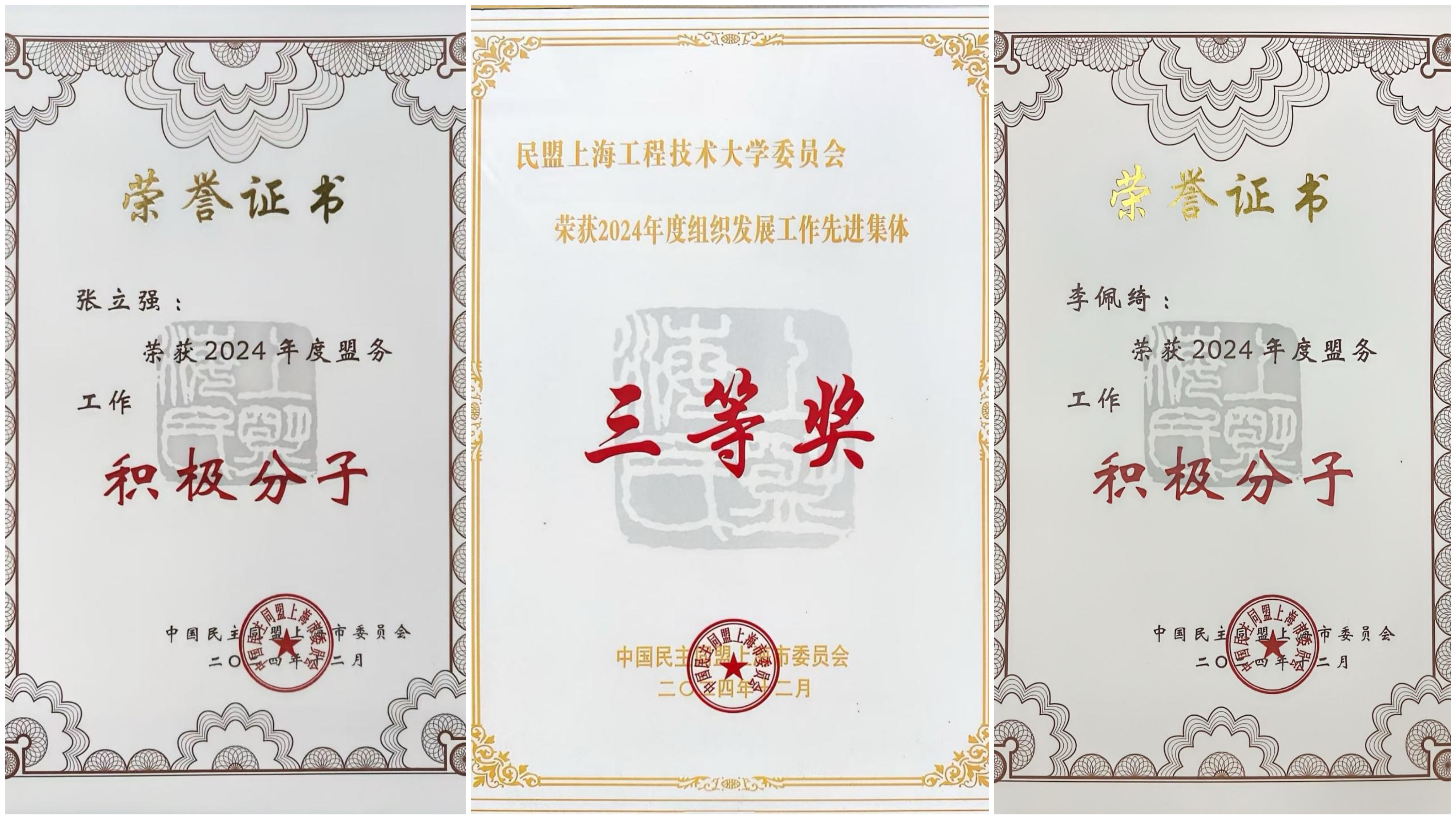 我校民盟委员会荣获2024年度组织发展工作先进集体三等奖,盟员张立强和李佩绮老师荣获盟务工作积极分子称号。