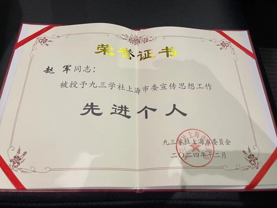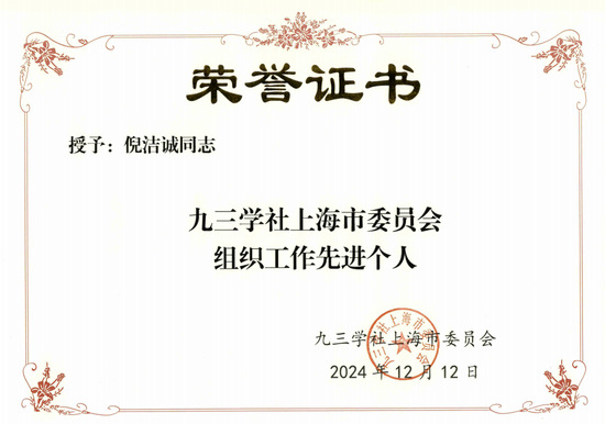 我校九三学社社员徐滕岗老师荣获社市委“社会服务工作先进个人”称号,倪洁诚老师荣获社市委“组织工作先进个人”称号,赵军老师荣获社市委“宣传思想工作先进个人”称号。