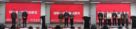 会议表彰了2024年在各项工作中做出突出贡献的教职工,学院党政领导班子为获奖教师颁奖并合影留念。