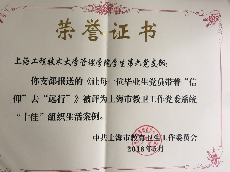 5月29日,市教卫工作党委举行“对标争先创新发展”教卫系统基层党建工作特色项目(案例)交流展示会,对获奖的党建特色项目、组织生活和主题党日案例进行了表彰和展示。市教卫工作党委领导、市委组织部有关部门负责同志、教卫系统各单位分管领导出席了会议。学校党委副书记、副校长朱晓青受邀出席会议,党委组织部负责同志、获奖党支部书记、学院组织员参加了会议。我校“突出‘选、育、管、用’,加强组织员队伍建设”党建特色项目、管理学院学生第六党支部“让每一位毕业生党员,带着‘信仰’去‘远行’”组织生活案例分别获得“十佳党建特色项目”和“十佳组织生活案例”。