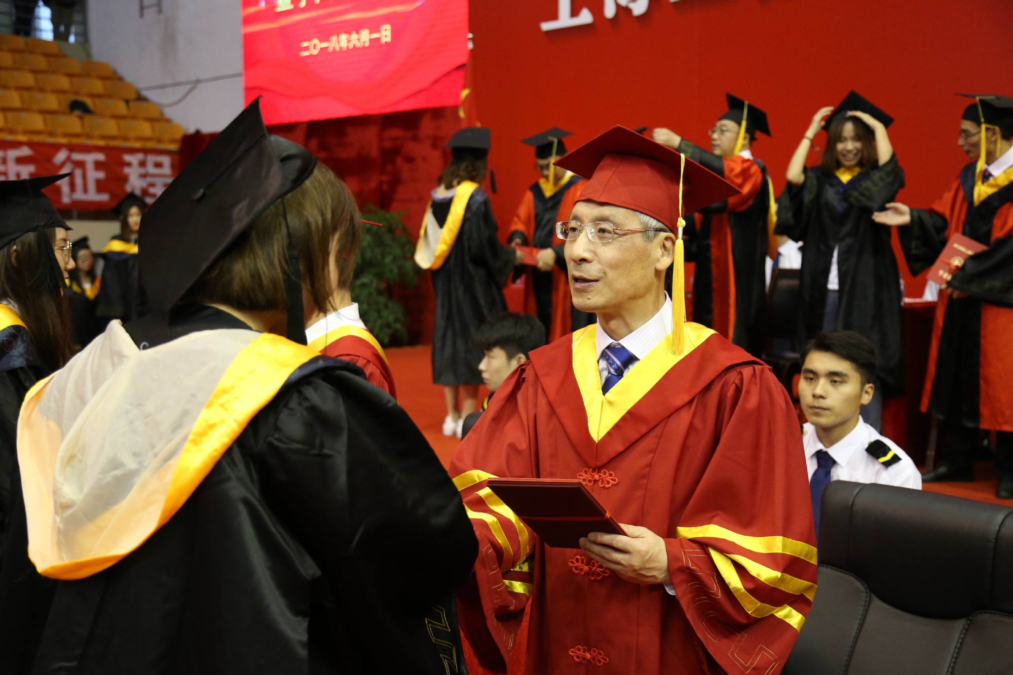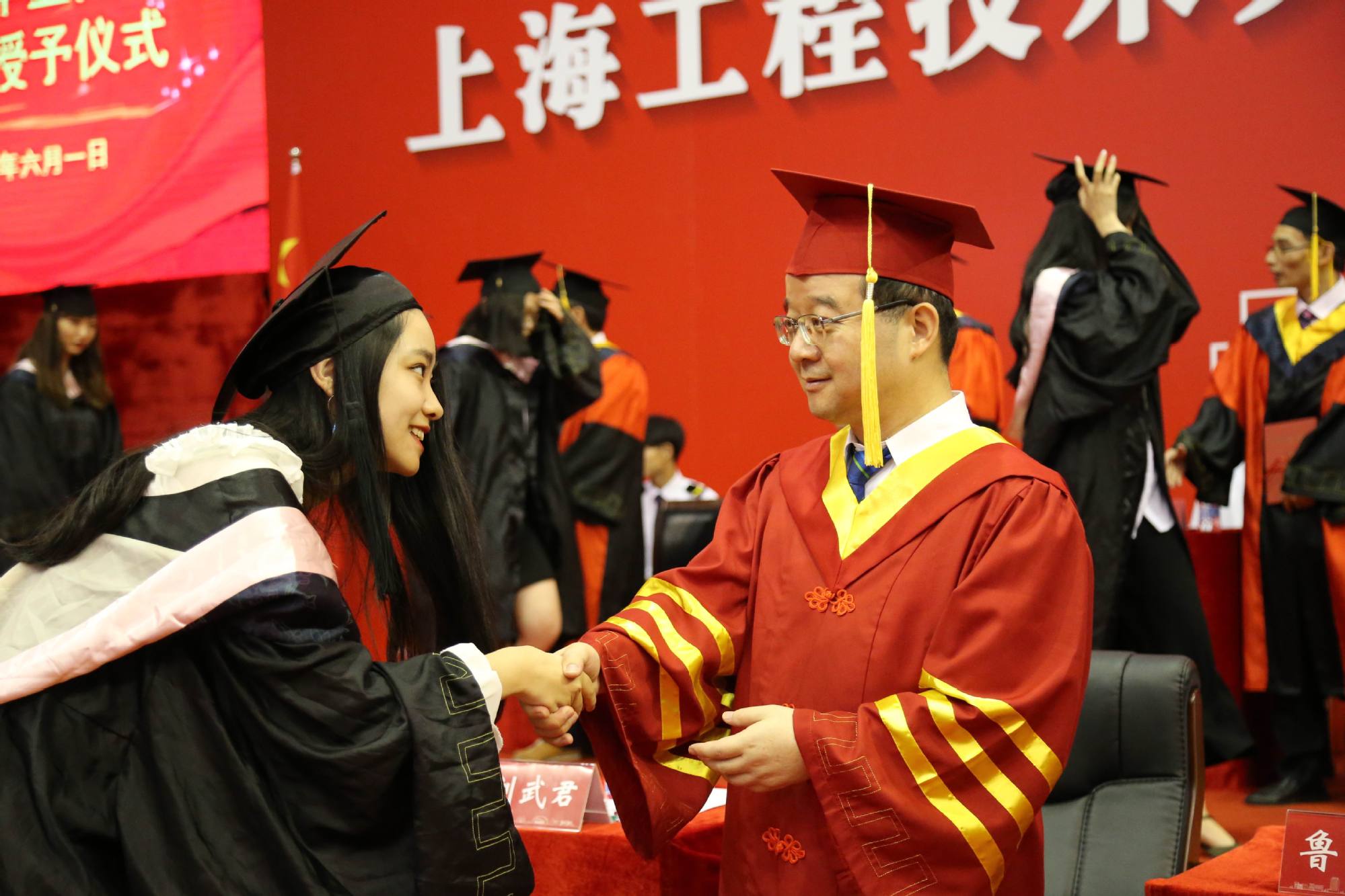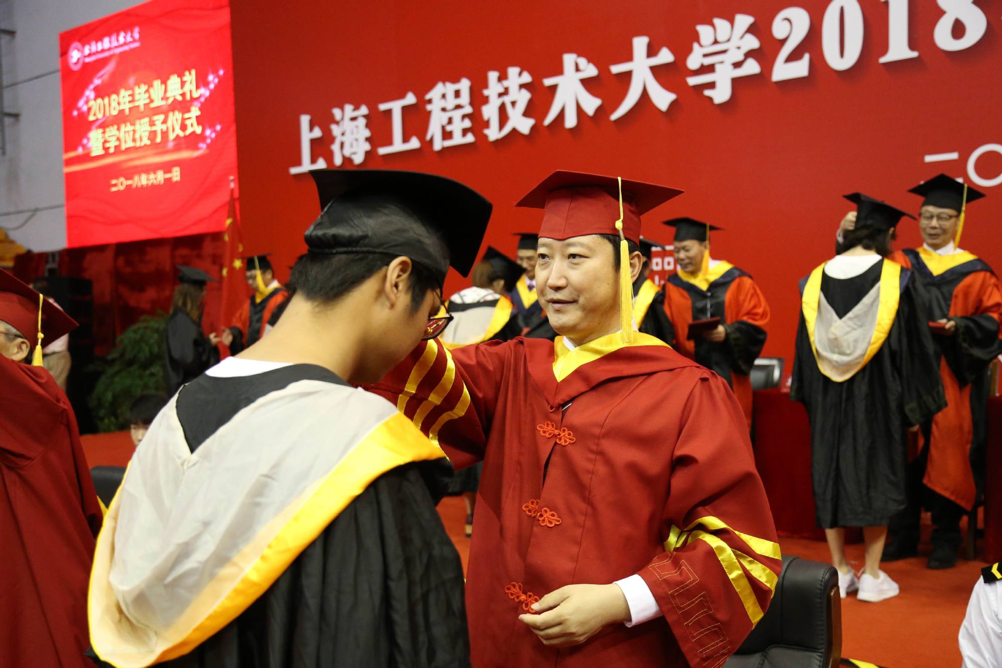 6月1日,上海工程技术大学2018年毕业典礼暨学位授予仪式在松江校区体育馆隆重举行。校党委书记李江,校党委副书记史健勇、鲁嘉华,校党委副书记、副校长朱晓青,副校长刘武君、姚秀平,以及校学位评定委员会成员、相关处室负责人、各学院党政负责人、教师代表、毕业生辅导员、班主任(导师)、2018届全体毕业生以及部分毕业生家长出席了本次典礼。毕业典礼由朱晓青副书记、副校长主持。