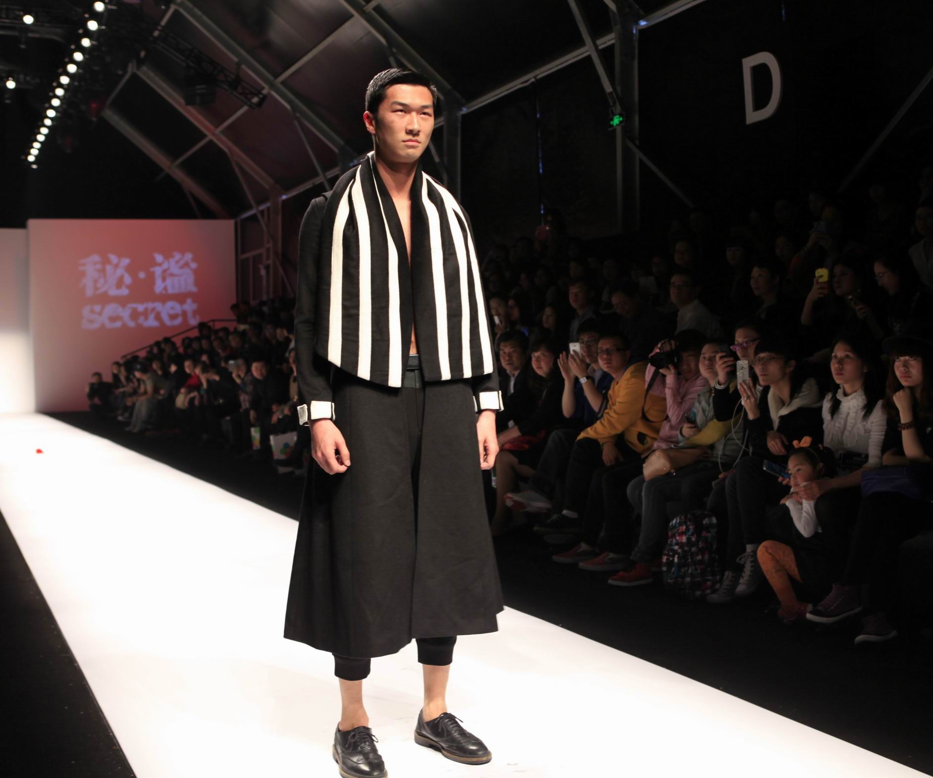 本次发布会主题“秘谧”,由“暗夜力量”、“图腾民俗”、“秘密花园”及“静谧出世”四部分组成,表达了设计师对未知世界的探寻,试图在时装与创意思维中,通过好奇与探密将人们的感官带入一个形色交织而不可言语的多维空间。作品基于明确的廓型,注重色彩明暗度的对比与过渡,强调面料肌理的创作与开发,将当下时尚元素与个性化创意相结合,充分展现了新生设计力量的活力与生机。