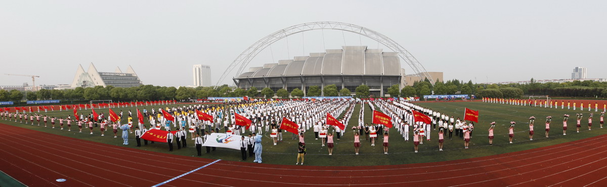 功夫style练起来,活力体操舞起来。5月20日下午,上海工程技术大学2014年运动会暨“百日千里”青春酷跑挑战赛启动仪式在田径场隆重举行。校党委书记滕建勇,校长丁晓东,校党委副书记田信灿、裴小倩,副校长孙培雷、程维明、史健勇、鲁嘉华,上海松江大学园区管委会常务副主任吴楚武,上海市大学生体育联合秘书处副秘书长沈幼伟,松江大学生体育中心主任陈铫,松江区体育局副局长秦梓辛以及大学城其它六所高校体育部主任等应邀出席。