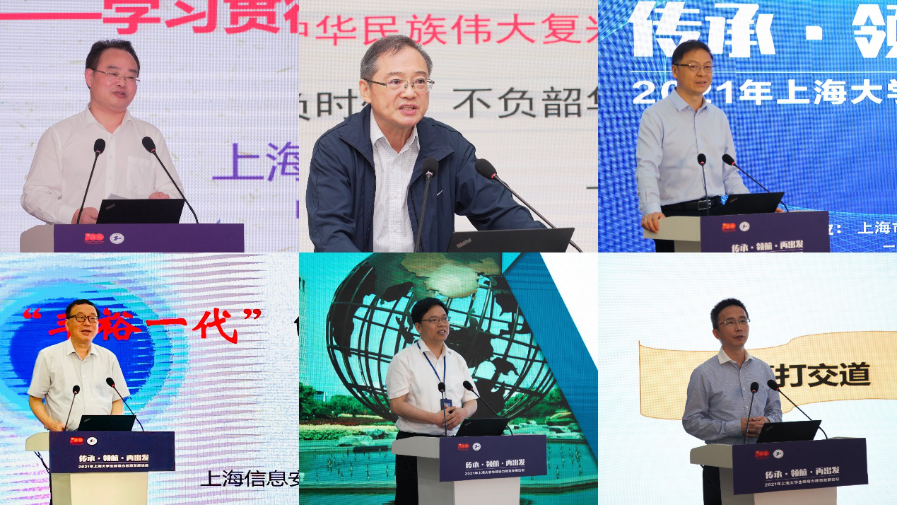 仪式后,市领导科学学会郭庆松会长作题为《学习贯彻习近平总书记“七一”重要讲话精神》的主旨报告;张志强副会长作题为《我国第二个百年奋斗目标与大学生领导力教育》的分享交流;上海社科院王玉峰副院长作《在拓展认识中深化大学生领导力的培养》的分享交流;上海开放大学高建华副书记作题为《丰裕一代的心态特征及引导策略》的分享交流;我校副校长夏春明作题为《立足新时代、深化大学生领导力教育——上海工程技术大学大学生领导力教育实践与探索》的分享交流;人民网上海分公司金煜纯总经理作题为《领导力的思考》的分享交流。