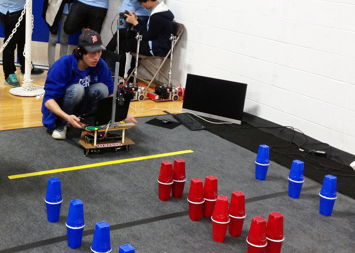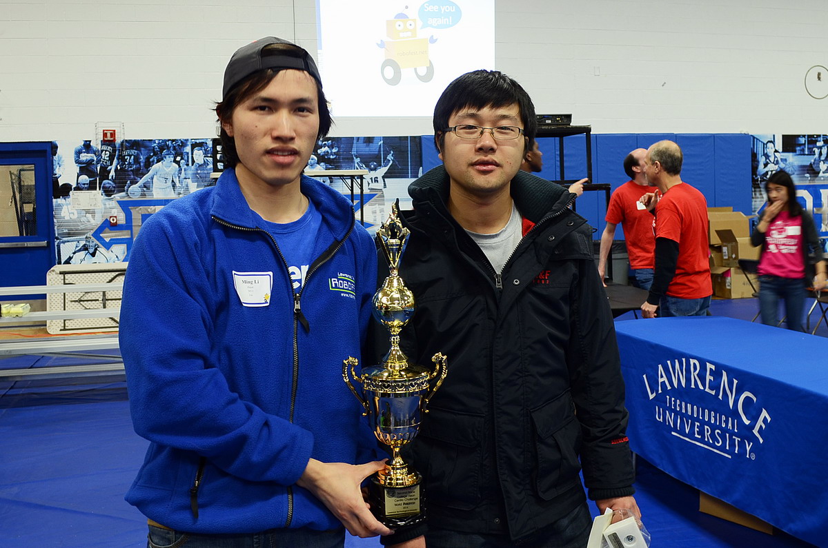“第一次尝试失败,我们有一点沮丧;第二次尝试失败,我们非常挫败;第三次尝试,也是我们最后一次尝试了,直至比赛前5分钟我们还在拼命调试,最终我们的机器人小车顺利通过终点线,完成了所有的比赛,我和我的指导老师,紧紧相拥,因为胜利真的来之不易!”电子电气工程学院计算机科学与技术专业学生李明和指导教师邵晨回忆起5月17日ROBOFEST比赛的种种,仍旧激动不已。 四个多月的努力,50多张图纸,2000多行的主程序,3次现场尝试,无数个研究制作的夜晚,最终才捧得大赛金灿灿的奖杯,奖杯是对这对磨合了近120天的师生组合的最佳回报。 ROBOFEST大赛是美国劳伦斯理工大学举办的机器人大赛,大学生组共吸引了来自中国、美国、韩国三个国家的六支参赛队伍参加。大赛要求参赛选手独立设计制作机器人,编写程序,使机器人能根据裁判要求,辨识出数字1-9,塑料杯颜色及黄色跑道线,最终完成比赛。 前奏:从计算机编程到机器人控制 赴美国之前的李明同学,或许只是一个爱笑、爱公益的男孩,他是学校杏林义工的首推者。从上一届的学姐学长那里了解到学院的“3+0.5”项目,即赴美国劳伦斯理工大学进修半年、完成其毕业论文,并参与劳伦斯理工大学举办的ROBOFEST的机器人大赛,抱着“试一试”的想法,他报名参加了改项目。“感受文化差异、了解一下机器人”是他最初的想法,然而,刚至美国的他,在课程老师的带领下,感受了乐高的智能机器人玩具以及达尔文的踢球机器人的灵敏,李明不禁对视觉机器人也充满了好奇和憧憬。 渐强音:师从ROBOFEST总策划人、美国劳伦斯理工大学Chung博士 对于此前从未接触过机器人领域的李明同学,学习机器人方面的基础知识便是他在美国劳伦斯理工大学前两个月必修课。他说自己很荣幸能够成为“Robofest”总策划人、美国劳伦斯理工大学十分权威的Chung博士班上的三名学生之一。精心的小班教学环境让他第一次体验到美式教育所带来的课程优势,课堂上不再只是一味的老师传授,更多的是同学的提问。遇到不懂的专业性单词,他会随时打开“谷歌翻译”进行查找;遇到不懂的学科问题,他会积极提出和老师同学一起讨论;遇到课程Project,他也会查找大量资料并仔细阅读和学习。他深知中国学生的创新能力远比不上国外同学,便花费比别人更多的时间去潜心研究和动手创新。想必这一切默默的付出与自己扎实的基础知识的积累在潜移默化中成为他日后能够成功的垫脚石。 高潮:手捧世界级比赛二等奖 站在了国际机器人大赛的赛场上,他带着机器人在最后关头咬牙完成了比赛,获得了大赛二等奖,这个奖项来之不易。“当天比赛一共有3次尝试的机会,首先机器人得先完赛,才有资格竞争最后的大奖。在上午的2次尝试中,机器人均告失败了,让我和指导老师都非常捉急和奔溃,但是最后一次,小机器人还是顶住了压力,冲向了胜利的重点线。” 为了比赛,李明整整研究了一个多月,50多张图纸,2000多行主程序,但比赛仅仅只有5分钟的时间,正所谓台上十分钟,台下十年功。为了实现机器人的“路径规划”,李明和邵晨老师反复讨论,决定用了“人工势场法”,将机器人在周围环境中的运动,设计成一种抽象的人造引力场中的运动,目标点对移动机器人产生“引力”,障碍物对移动机器人产生“斥力”,最后通过求合力来控制移动机器人的运动。 “要完成‘合力’,也绝非易事,之前也一直失败,最终探索出了简化版的‘势场法’,完成机器人的‘路径规划’。”李明的叙述不仅透露了屡次失败的崩溃,也从他的语气中感觉到了排除万难最终成功的得意。 捧起这世界级比赛的大奖杯,李明既兴奋又激动,“算是对自己专业的一种肯定!” 延长音:与机器人的缘分未尽 短短四个月的美国求学之路暂时告一段落,但李明与机器人的缘分才刚刚开始。面临大四结业的他正在将自己的科研成果写进他的毕业设计论文——《基于视觉的机器人运动控制系统设计》中去,和其他怀揣着梦想的年轻人一样,他的理想是做一名Web前端开发工程师,他说:“自己要学的东西还有太多太多,如果有机会我还会再去美国感受他们的文化,学习他们的创新与务实精神!”