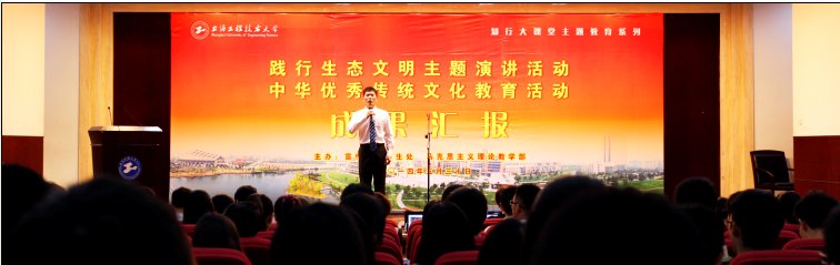 为深入学习贯彻党的十八大精神,引导广大学生树立社会主义核心价值观,追求“国家富强、民族复兴、人民幸福”的伟大的“中国梦”。马克思主义理论教学部以我校“立德树人·立业圆梦”培育和实践社会主义核心价值观主题活动为契机,以“知行大课堂”为载体,与学生工作部共同组织全校1万多名大学生开展了“践行生态文明”主题社会实践和“弘扬中华优秀传统文化”宣传教育活动,并以主题演讲和视频展播的形式,向全校展示汇报活动所取得的成果。