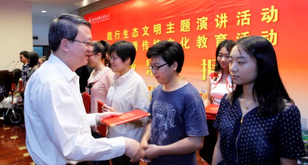 5月30日上午,我校“践行生态文明”主题演讲和中华优秀传统文化教育活动成果汇报会在图文信息中心第二报告厅举行。校党委书记滕建勇、副校长孙培雷、党委宣传部部长王一川、学生工作部(处)长徐阳,马克思主义理论教学部党总支书记曹开云、社会科学学院院长张健明、党委宣传部副部长徐吉平,学生工作部(处)副处长严运楼等校、院领导出席并担任演讲比赛评委。全校各学院总支副书记、部分辅导员和学生代表共280人参加了会议。