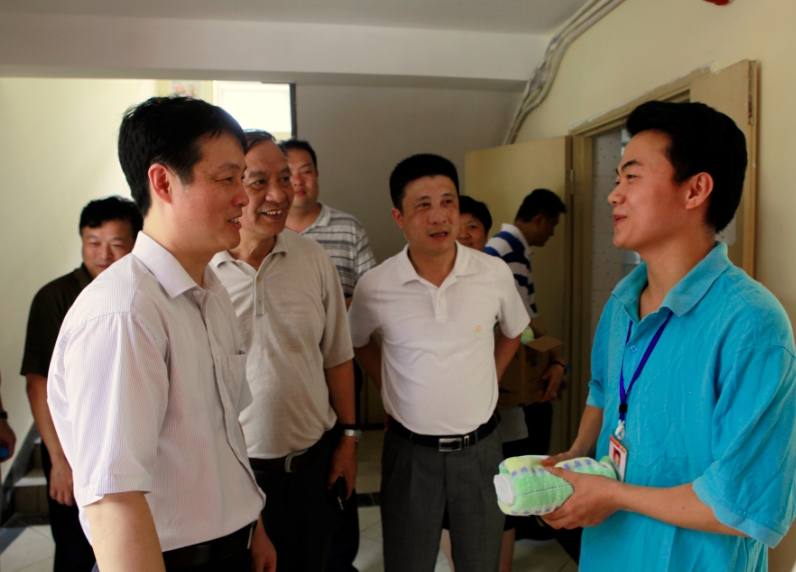8月6日上午,校党委书记滕建勇、校长丁晓东、副校长史健勇先后来到保卫处、航飞大楼基建工地、图文信息中心、教学楼、学生公寓、师生活动中心餐厅亲切慰问暑期冒着高温坚守在工作岗位的一线员工,并送去防暑降温用品。