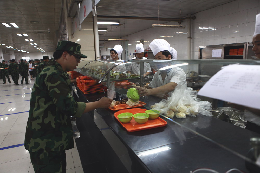 “后羿做饼,终与嫦娥重聚”的传说故事寄予了月饼团圆的美好寓意,为了慰藉新生们第一个不在父母身边的中秋节,学校5日开始就琢磨如何让新生们在军营中过节,广式的、苏式的……为了迎合大多数同学的口味,也让大多数第一次来上海的同学,感受到上海文化,食堂最终选定、制作了4000多只鲜肉月饼。松松的酥皮与多汁的鲜肉组合,圆圆的外形,不仅预示着团圆,还给了新生一次上海文化的体验。