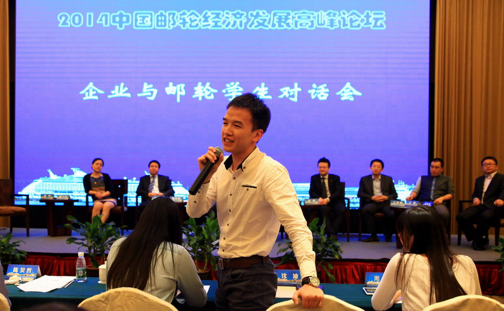 我校旅游管理(邮轮经济)师生代表和邮轮专业本科生代表共同参加了这次盛会。在此次高峰论坛专设的大学生创新论坛上,来自我校的研究生姜宏、陈旭和蔡二兵分别围绕邮轮产业发展对上海经济转型升级效应、我国邮旅游供需预测和国内四大邮轮母港竞争力等主题进行了交流发言。邮轮专业本科生徐鹏和顾妍琼还结合自身实习实践经历,分享了邮轮旅游的感知体验。随后进行的企业与邮轮学生对话会更是邀请了来自邮轮公司、港口及旅行社的多位嘉宾,与我校邮轮专业的优秀毕业生及在读学生进行了交流。最后企业嘉宾及毕业生给出席的同学们都予以了殷殷寄语。