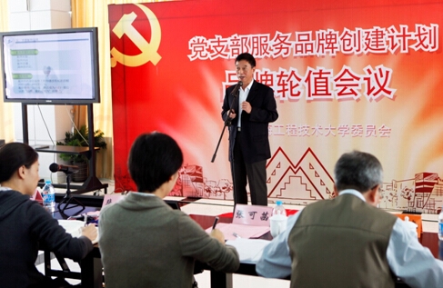 在党支部服务品牌创建中,校党委设计了“分享品牌故事”、“累积品牌积分”、“聘请品牌顾问”、“选出品牌关键词”四大举措凸显各党支部的服务品牌特色。“支部服务品牌轮值会议”为各党支部搭建了充分为展示服务中的“品牌故事”,宣传党支部在服务学校发展、服务师生成长、服务社会大众等方面的好经验和好做法的舞台,轮值会议还利用微信留言、在线投票的形式畅通了“线上”、“线下”的互动渠道,增强党员的参与积极性。校党委还专聘我校特邀党建组织员担任“品牌顾问”,定期参与轮值会议等创建交流活动,并对各党支部对品牌定位、服务内容、创建质量进行指导和监督。轮值会议上,还通过现场与会人员评选品牌故事关键词和积累品牌积分的形式,鼓励和推广有可操作性、成效显著的工作方式,进而凝练各党支部服务品牌,彰显支部特色。