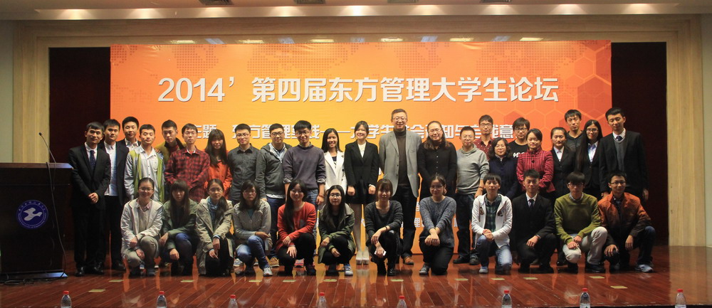 由上海工程技术大学东方管理研究中心主办,上海外国语大学东方管理研究中心协办的2014年第四届东方管理大学生论坛于11月18日下午,在我校举行,本届论坛聚焦“东方管理实践——大学生社会认知和自我意识”,沪江网联合创始人、复旦大学于杰博士,上海工程技术大学副校长史健勇,管理学院副院长孟勇,社会科学学院副院长于凯,管理学院党委副书记范君晖等近200余人欢聚一堂,共同为东方管理的发展贡献点滴智慧。