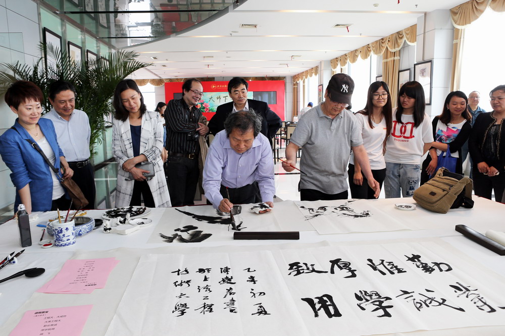 当天,艺术家们登临我校19楼观光台领略大学城风光,参观艺术学院摄影工作室,与我校艺术学院师生交流创作心得,并即兴留赐墨宝,将悠悠的文化墨香留在了美丽的工程大校园。