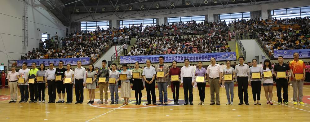 6月2日上午,校运动会暨阳光体育开幕式在我校体育馆隆重举行。上海松江大学园区管委会常务副主任吴楚武;党委副书记、工会主席夏斯云;副校长、校体育运动委员会主任孙培雷;副校长程维明、史健勇、鲁嘉华;松江大学园区各兄弟院校体育部主任以及各院、部、处、室、直属单位的党政领导、全校师生员工代表等出席了本次活动。