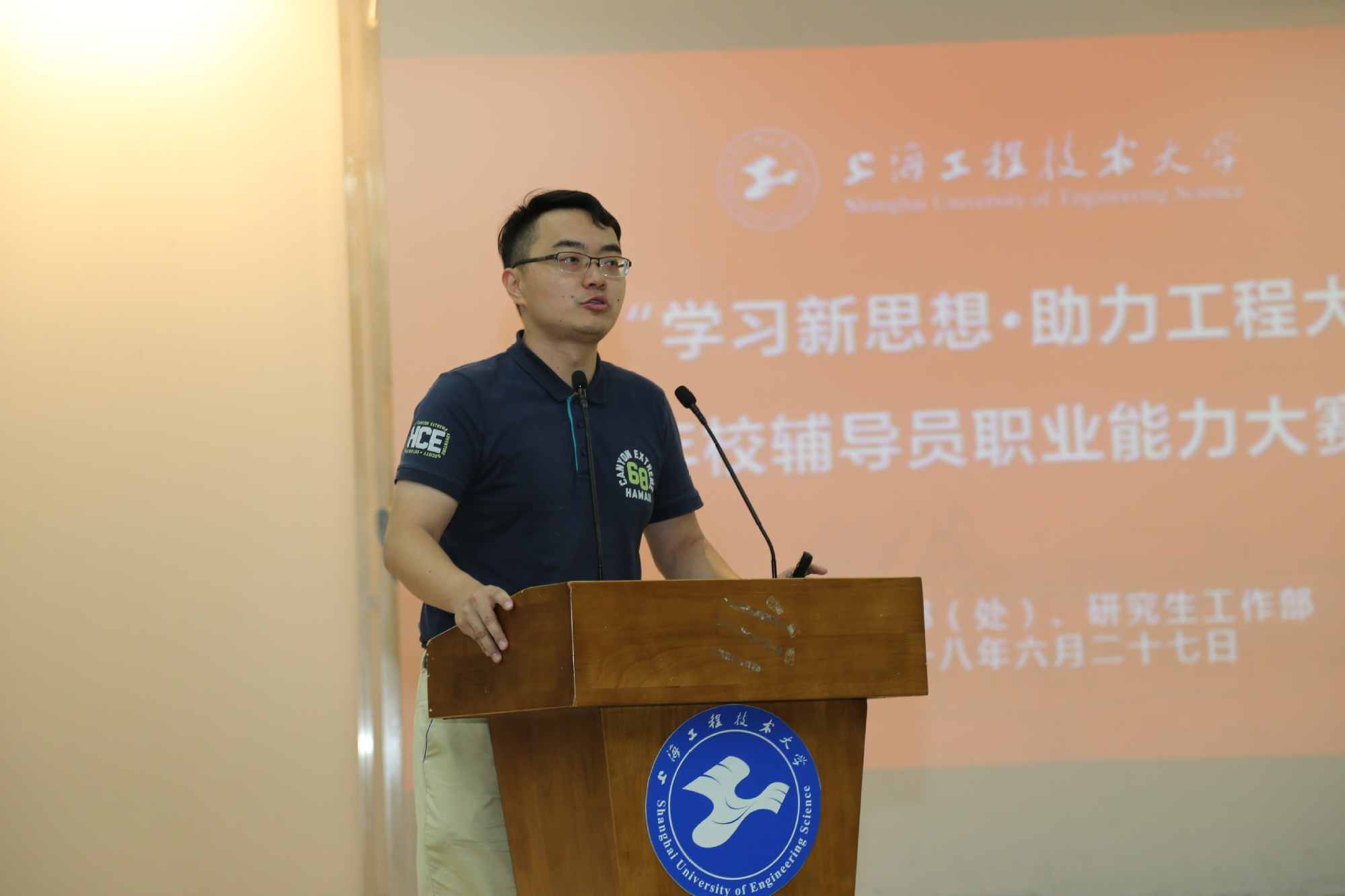 本次校辅导员职业能力大赛紧密围绕党的十九大和全国高校思想政治工作会议精神,对标上海市教委关于辅导员职业能力大赛的要求,丰富和创新比赛内容和形式,前期通过初赛、复赛环节,共有9名辅导员进入总决赛。大赛还邀请了获得2017年上海市辅导员职业能力大赛二等奖、汽车工程学院的叶寅老师为大家做宣讲展示。经过主题演讲和谈心谈话两个环节的精彩展示和激烈角逐,社会科学学院张强、外国语学院李雪苗荣获一等奖;航空运输学院(飞行学院)李茜希、轨道交通学院梅文静、学生工作部(处)、研究生工作部阿布都许库尔·居乃丁荣获二等奖;机械工程学院董春亮、管理学院白茹、化学化工学院郑文静、材料工程学院沈静荣获三等奖。