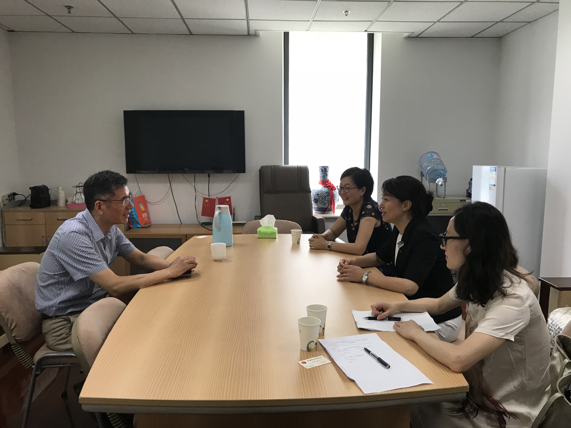 6月26日下午,服装学院党委书记袁蓉、党委副书记谢志霞、学院纺织工程系党支部书记许颖琦、以及校友工作辅导员沈智莉来到上海纺织科学研究院,拜访服装学院优秀校友李勇。