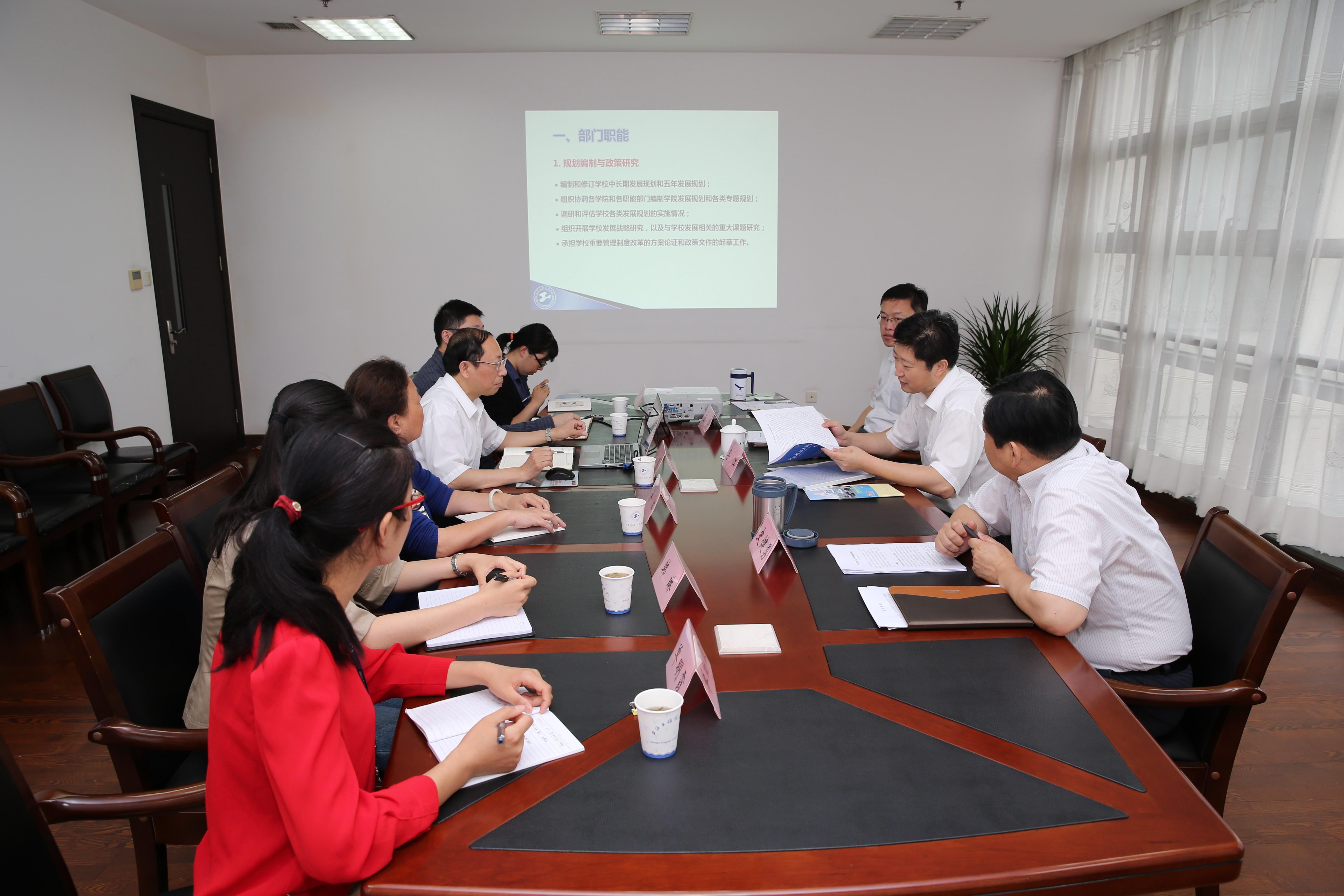 在发展规划处调研中,发展规划处处长沈勤对本部门的主要职能和基本情况、去年主要工作和今年工作重点,以及发展瓶颈与设想等方面作了专题汇报,并开展了互动讨论。李书记指出,学校五年规划提出的目标要与各职能部门和二级学院的落实相结合,要分解成每年的工作目标,与年底考核相结合,确保规划目标和任务按时完成;在评价规划目标的落实情况时,应考虑引入“效因评价”方法,厘清投入产出的绩效与体制机制等的因果关系,从而为学校未来发展提供政策制定的依据;结合推进高等教育研究所建设,要加强高教理论研究和国际比较研究;在理解上海建设具有全球影响力的科创中心的背景下,思考我校面临的机遇和挑战,在认识现有基础和找到瓶颈的基础上,明确学校的发展定位和改革发展目标。