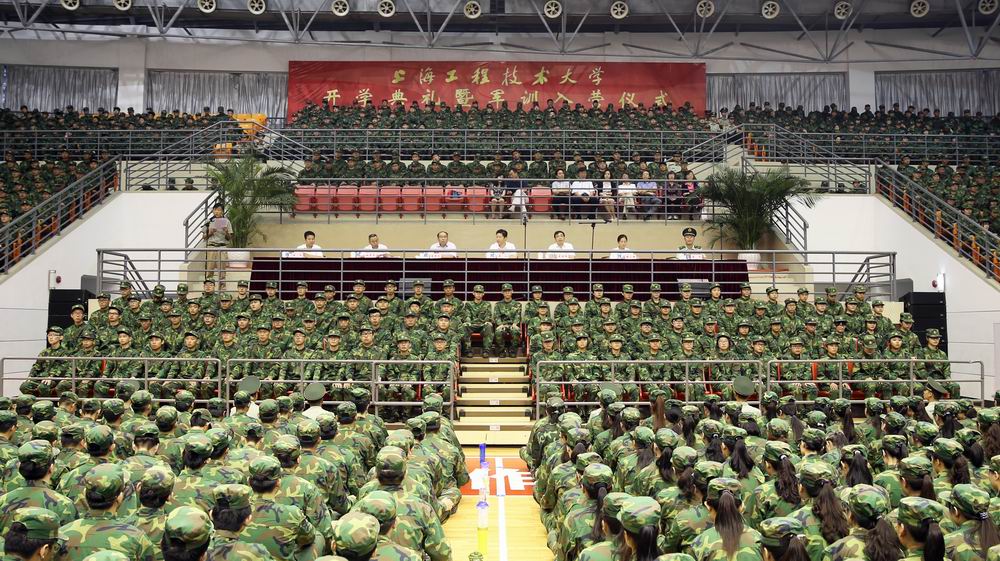 最后,李江书记为2015级新生军训师进行了授旗。上海工程技术大学校旗在体育馆中迎风飘展,新生开学典礼暨军训入营仪式圆满结束。