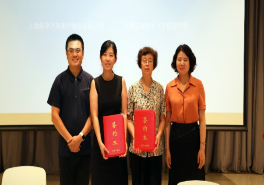 管理学院党委书记周洁与上海蔚来汽车用户服务有限公司人力资源总监石文签订了框架合作协议。