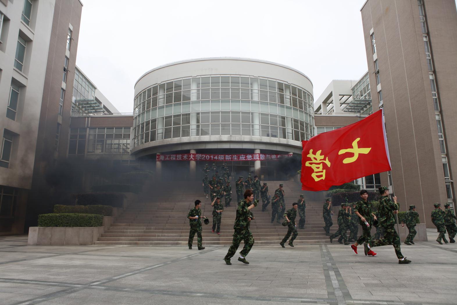 随着现场总指挥的一声令下,教学楼演练区域燃起了烟幕弹,4000多名军训新生从各自所处的教室内循着指定路线,井然有序地疏散到教学楼外空旷区域集结。通过这种近于实战的演练,强化了学生在突发紧急情况下的逃生意识,熟悉了逃生路线,掌握了逃生的基本要点。