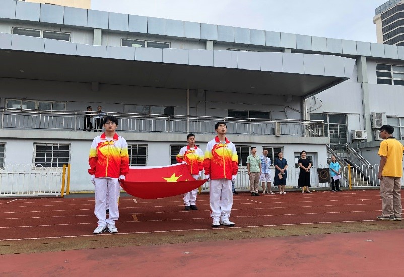 伴随着庄严的国歌,鲜艳的五星红旗冉冉升起,全体师生一致面向国旗行注目礼。学生科科长徐伟文老师向全体同学做开学讲话,他鼓励大家要自觉遵守校规,牢固树立安全稳定意识,以满腔的热情投入到新学的的学习中去。