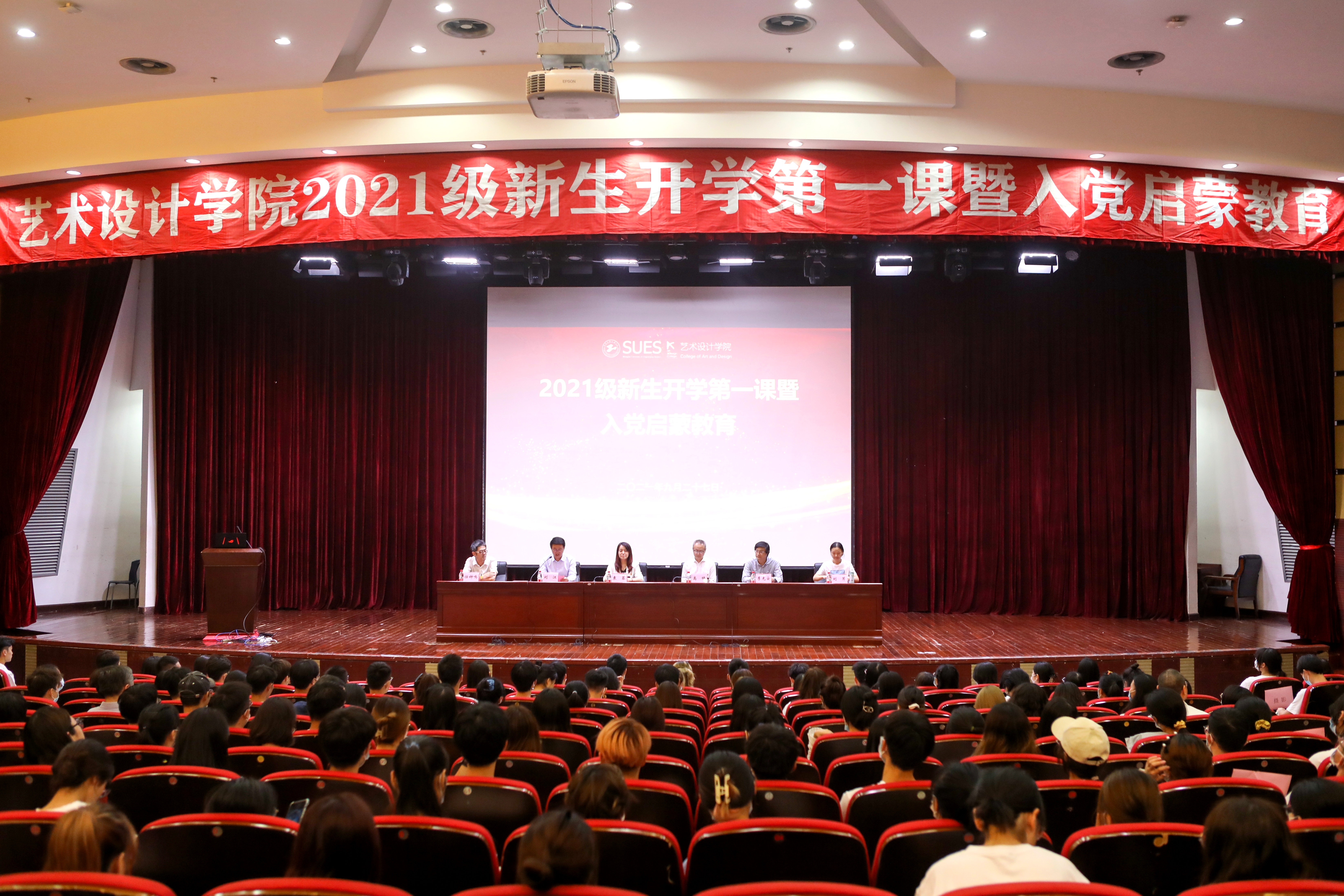 9月27日下午,艺术设计学院2021级新生开学第一课暨入党启蒙教育在志宏堂举行。学院党委书记袁蓉,党委副书记、院长高瞩,党委副书记刘江,副院长李光安、任钟鸣、刘芹,各系主任、新生班导师、组织员、教学秘书、全体辅导员、全体2021级本硕新生参加学习。会议由艺术设计学院党委副书记刘江主持。