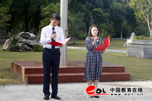 清晨,随着校国旗护卫队踩着整齐划一的步伐来到国旗下,雄壮的国歌声响起,同学肃穆而立,饱含热情,高唱国歌。活动中,校团委书记王佳杰带领现场师生庄严宣誓,励志为实现中华民族伟大复兴的中国梦贡献青春力量。