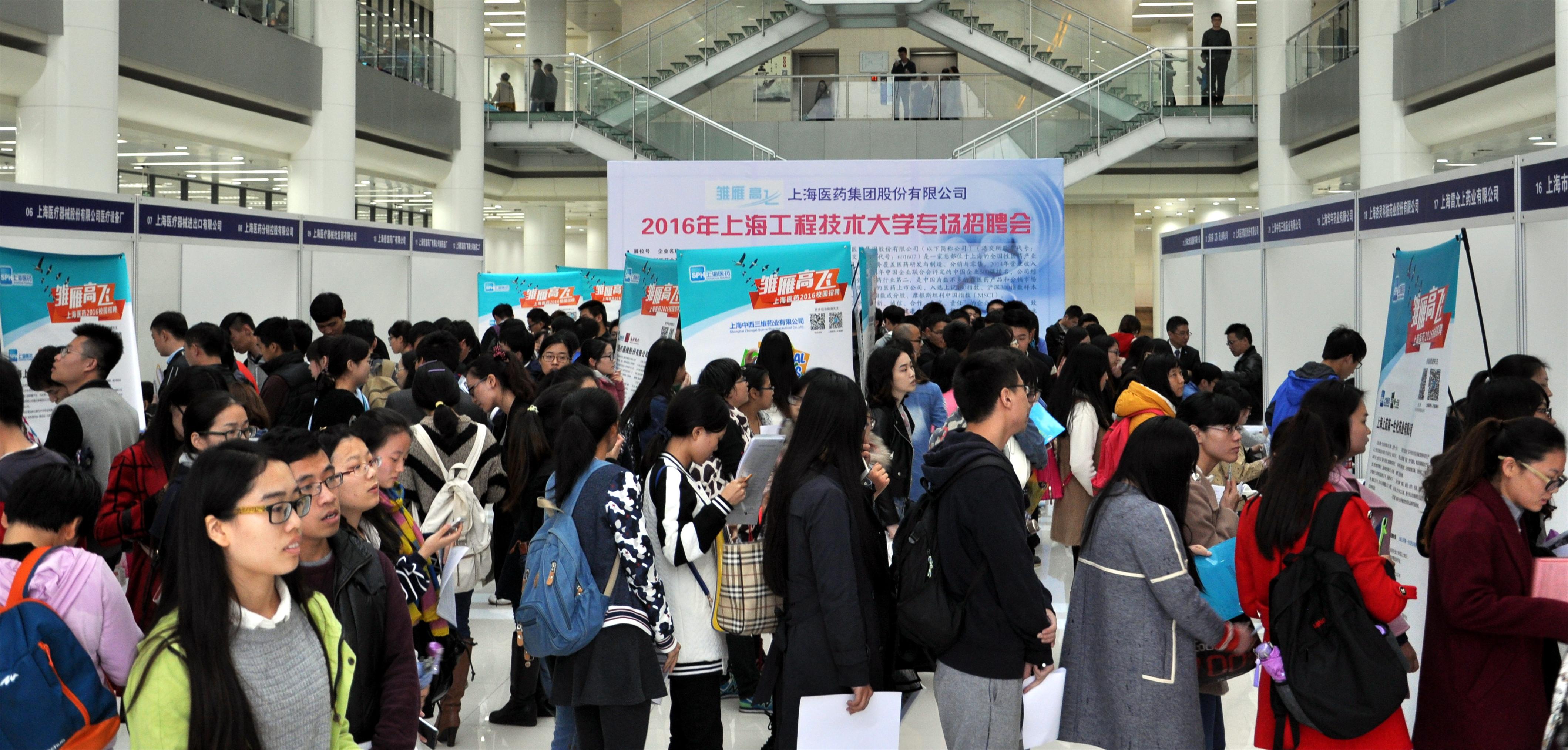 300余名校内外应届毕业生参加了宣讲会。宣讲会伊始,工作人员播放了公司宣传片,帮助同学们了解企业文化。随后,上海医药集团有限公司人力资源部总经理唐坚豪详细介绍了公司的基本情况、核心理念以及发展前景,他诚邀广大毕业生加入上药集团的大家庭。参加本次招聘会的下属子公司招聘代表就本公司的情况依次作了简短介绍,邵奇、陆洁、朱俊等现就职于上药集团各下属子公司的校友代表则从个人的角度,向大家讲述了他们在上药集团的工作体会及享受到的公司福利,让在座学生对企业有了更加深入的认识。