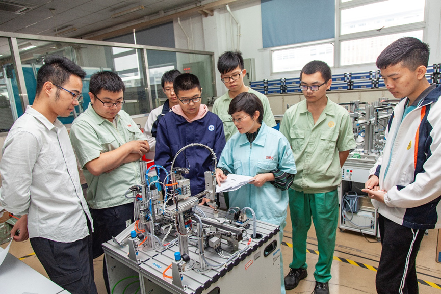 职业教育必须瞄准技术变革和产业优化升级的方向,让专业教材、课程对接市场需求,把产教融合、工学结合作为培养人才的基本模式。学院校深谙此道,通过大师带教的方式传承工匠精神,对接市场需求。依托金德华技能大师工作室、周巍技能大师工作室、万军数控技术应用名师培育工作室、茹秋生机电技术应用名师培育工作室,对年轻教师进行培养。充分发挥“五老”优势,努力搭建关工委“青蓝工程”育人平台,发挥老同志“传帮带”的作用,通过“青蓝”结对,老教师手把手给青年教师传授教育教学技能,助力青年教师成长提升,培养符合现代职业院校发展要求的教师队伍,为培养高素质技术技能型人才做出了应有的贡献。近十年来,教师在教育教学、各级各类技能竞赛及学科竞赛中屡获佳绩,获得上海市级教学成果一等奖4项、上海市级教学成果二等奖3项,拥有市级教学团队5个,市级教师教学创新团队2个,市级精品课程12门,市级精品在线课程2门;10人获上海市园丁奖、育才奖等市级荣誉。学校现有全国职业院校技能大赛优秀指导教师、金牌指导教师、市级教学名师、市级技术能手10余人,上海市中等职业教育名师培育工作室2个;承担了国家级及省部级项目4项,发明专利授权12项,发表SCI论文12篇、核心论文148余篇。有了优秀的教师,才能培养德智体美劳全面发展的知识技能并重的面向生产、服务、管理第一线的高素质技术技能型人才。