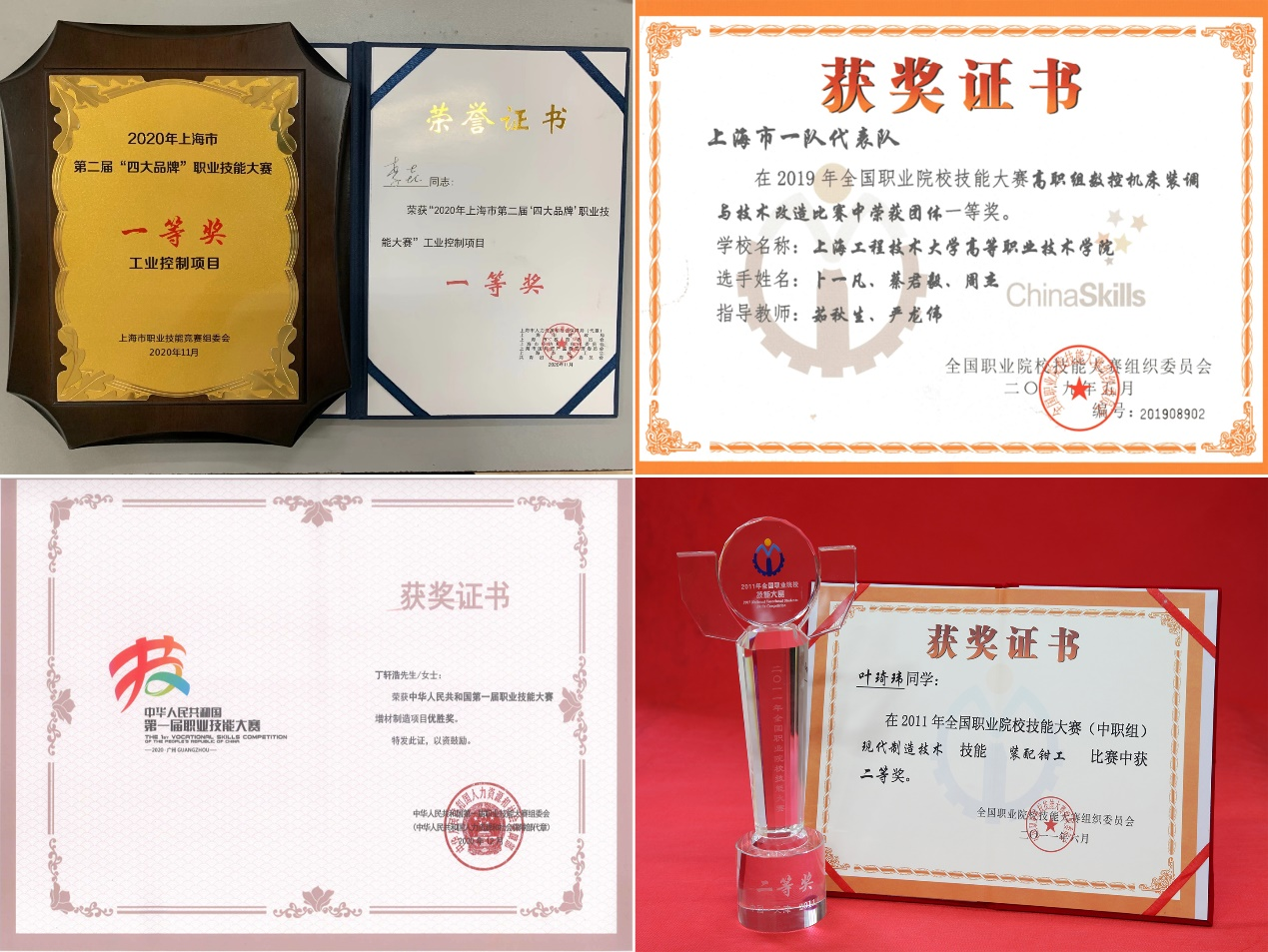 经过不断研究,学校探索出“以赛促教、以赛促学”的发展模式,学校积极参加各级各类技能和学科竞赛,多措并举引导、支持和激励广大师生积极参与各级各类竞赛活动,吴昊同学分别入围第44届、第45届世界技能大赛国家集训队,刘俊、丁轩浩同学入围第46届世界技能大赛“工业控制”“增材制造”项目国家集训队;学院校获得市级及以上技能竞赛233项,其中国家级一等奖6项、二等奖12项、三等奖18项,市级团体第一名19项、一等奖37项;获得市级及以上学科竞赛400余项,其中国家级一等奖7项、二等奖13项、三等奖5项,市级特等奖3项、一等奖80项;获得市级及以上创新创业类竞赛43项,其中“挑战杯——彩虹人生”全国职业学校创新创效创业大赛一等奖1项、二等奖3项,“互联网+”大赛国家级铜奖2项。2021年,学生在上海市“星光计划”第九届职业院校技能大赛中表现优异,获我校参赛史上最好成绩。第七届中国国际“互联网+”大学生创新创业大赛参赛项目数及获奖项目数均创历史新高。为国赛、世赛培养和输送高水平参赛选手。10月12日,在上海世赛倒计时一周年之际,第46届世界技能大赛组委会举办的外交官“走进世赛”主题活动中,有来自7个国家驻沪领事机构12位总领事及高级领事官员来我校观摩了工业控制、增材制造世赛项目。10月19日,上海第46届世界技能大赛事务执行局向我校发来感谢信。莘莘学子勤学苦练,勇攀高峰,为我校建校70周年献上了一份特殊的礼物。