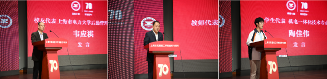 校友代表上海电力大学后勤处副处长韦应祺、2020年上海市“四有”好教师(教书育人楷模)提名奖获得者黄晓峰老师以及机电一体化技术专业陶佳伟同学分别作为校友代表、师生代表发言。