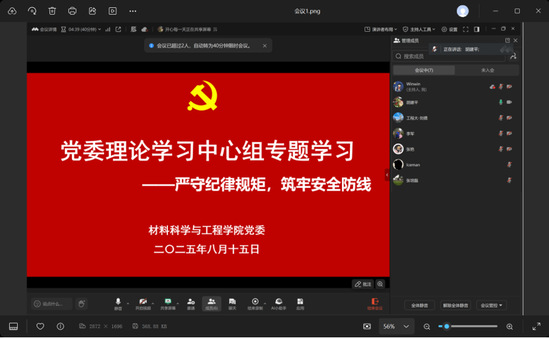 为深入贯彻中央八项规定精神学习教育,进一步增强师生党员的总体国家安全观,守好政治纪律,自觉锤炼党性,材料科学与工程学院党委于8月5日-15日通过党委理论学习中心组学习会和党支部“三会一课”、主题党日等形式开展以“严守纪律规矩,筑牢安全防线”为主题的专题学习。