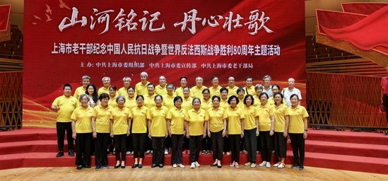 8月22日下午,由市委组织部、市委宣传部、市委老干部局联合主办的“山河铭记·丹心壮歌”——上海市老干部纪念中国人民抗日战争暨世界反法西斯战争胜利80周年主题活动在上海交响音乐厅举行。我校老教授协会会长夏斯云,副会长陈力华带领退休教职工合唱团(老教授合唱团)参加演出。