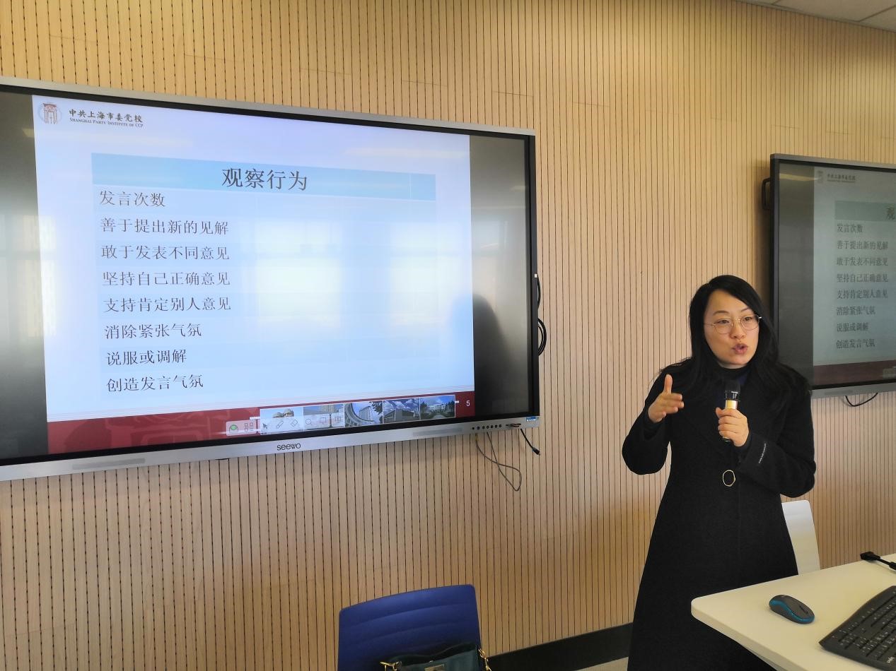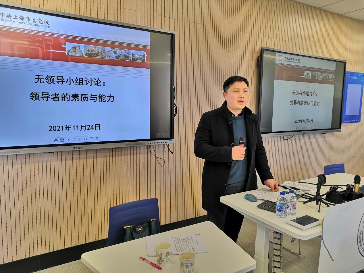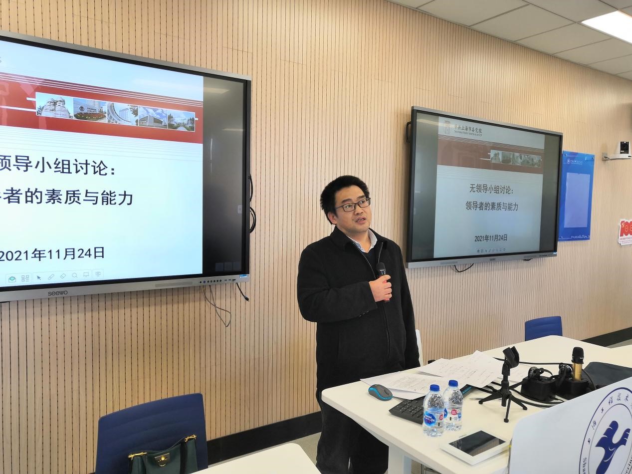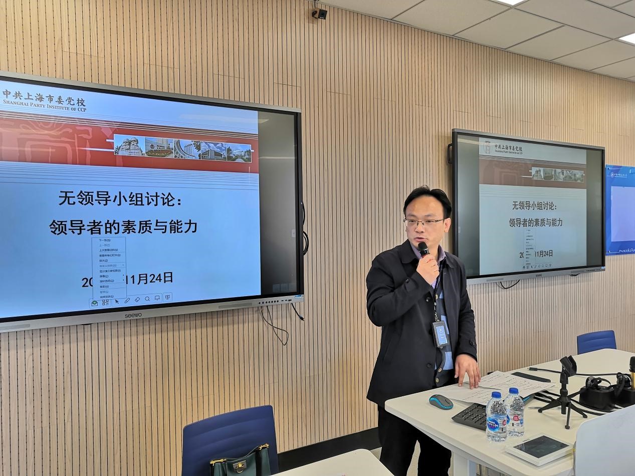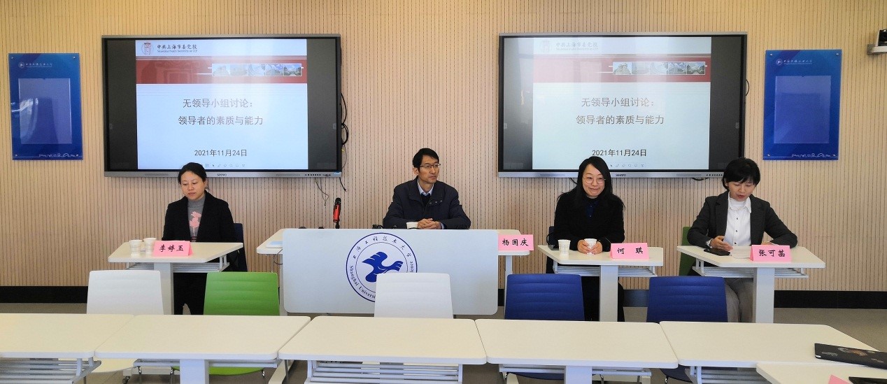 为切实提高领导干部解决实际问题的“七种能力”,建设高素质专业化干部队伍,11月24日上午,上海工程技术大学党校学院(部、中心)行政副职培训班学员在党委组织部、党校的组织下,以无领导小组讨论的形式,开展领导者的素质与能力专题互动教学。市委党校领导科学教研部杨国庆、何琪、李婷玉三位副教授同时受邀参与授课。来自各学院(部、中心)的37位行政副职参加了互动教学,活动由校党委组织部副部长、党校常务副校长张可菡主持。