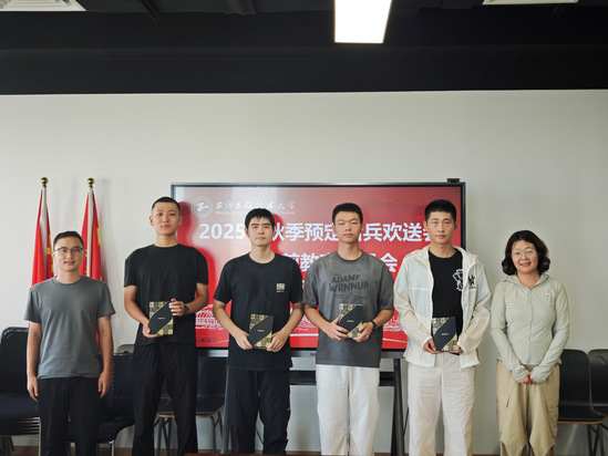 欢送会上,学院为即将参加役前集训的大学生赠送纪念品,寄语同学们要以“厉兵秣马待风雷”的严谨做足役前准备。会后,老师们与预定的新兵合影留念,欢送同学们前往训练基地开启新的征程。